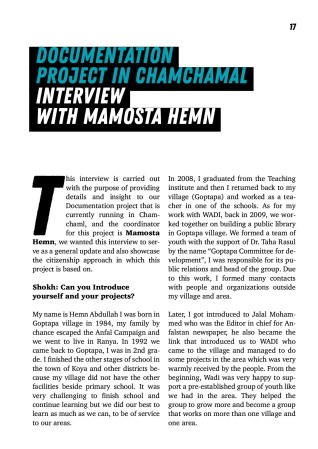 Memory Documenting the Anfal Campaign: An Interview Adminon12/12/2023/Comments closed We made a long interview with Hemn Goptapy, who is doing a documentation project about the Anfal campaign in Kurdistan and villages that were bombed with chemical gas in 1988. wadi 12_2023_eng_webHerunterladen Related